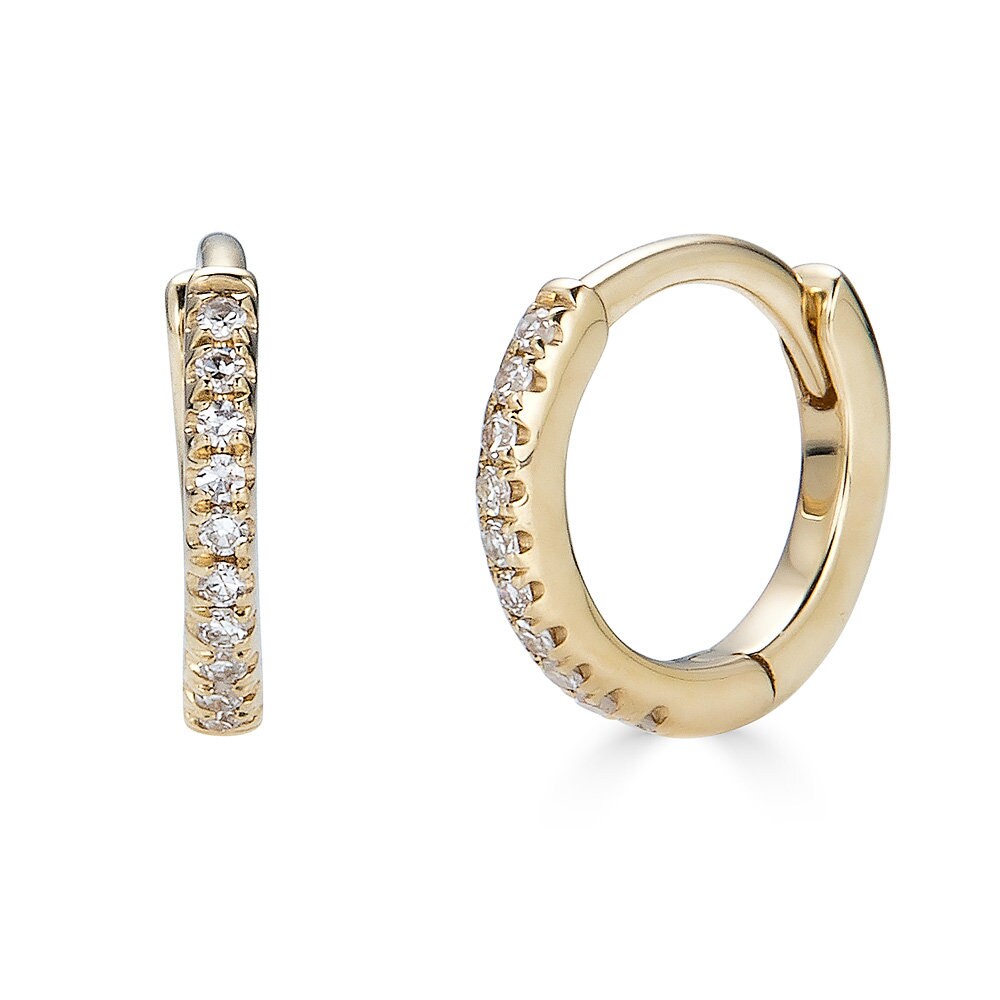 Hoop earrings are a great way to make your outfit complete or dress up an otherwise drab look. Wide Band 14K Gold CZ Hoop Huggie.