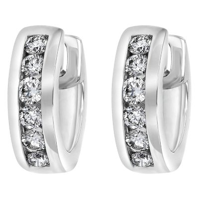 0 50 Ct T W Diamond Huggie Hoop Earrings In 14k White Gold Sam S Club
